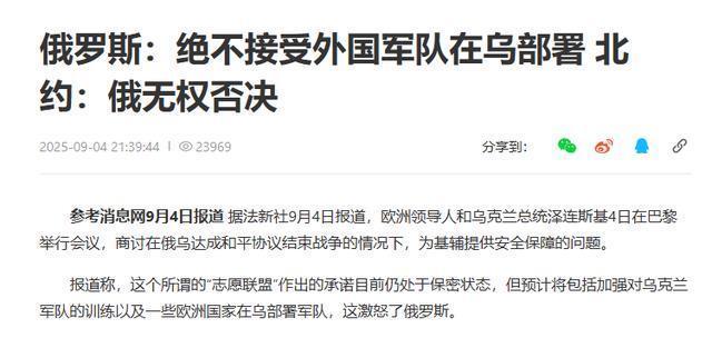 欧洲多国领导人和乌克兰总统泽连斯基9月4日在巴黎开会,商量一件大事:万一将来俄乌真的达成和平协议、战争结束,该怎么给乌克兰提供“安全保障”。 不过,这些所谓“志愿联盟”国家具体承诺了什么,目前还处于保密阶段。据透露,内容可能包括加紧帮乌克兰训练军队,甚至不排除一些欧洲国家直接派兵进驻。这也一下子惹恼了俄罗斯。 俄罗斯外交部当天就强硬回应,明确表示绝不会接受外国军队“以任何形式”在乌克兰部署。俄外交部发言人扎哈罗娃直指这种设想根本不可接受,她批评基辅想要的安全保障其实是“对欧洲大陆的危险保障”配资实盘网上配资炒股,甚至称这是恐怖主义的跳板。