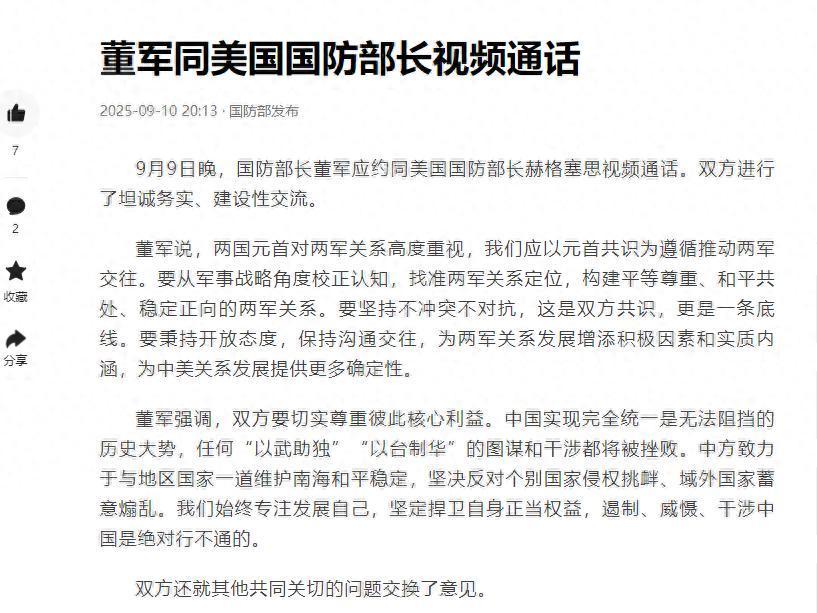 然而,美国在通话中的回应却显得相当矛盾。赫格塞思在一方面声称“不想与中国发生冲突”,而另一方面又提到“要坚决维护美国在亚太的利益”。这样的表态实则揭示了美国在对华政策上的内在矛盾——一方面试图通过对话来修复关系,另一方面又始终保持对中方的军事压力,妄图继续执行其霸权政策。